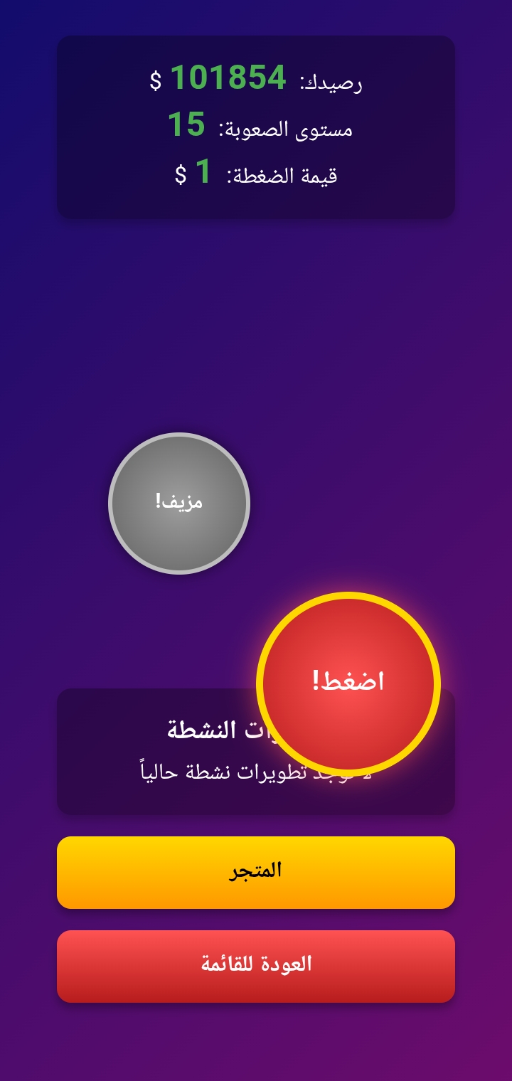 · الضغط على الزر الأحمر لربح دولار واحد لكل ضغطة